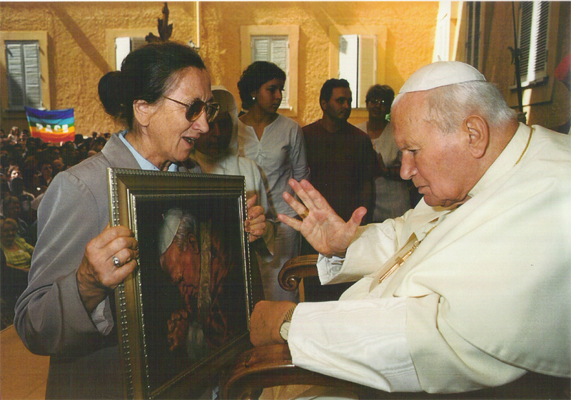| John Paul II receives his portrait (painted by my wife) from the art director of his museum, Vatican, September 2004 |