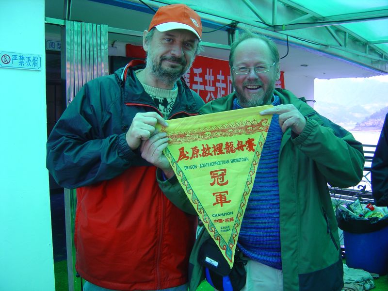 | With Bob McKay, after winning a boat racing competition on Yangtze River, China, April 2005 |