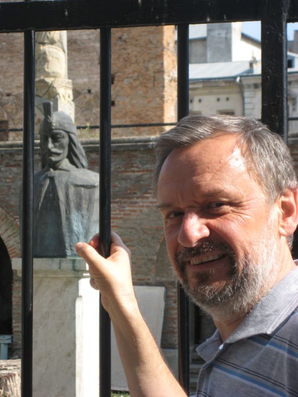 | With Vlad Dracula in front of his castle, Romania, June 2008 |