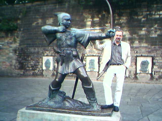 | Fulfilling a dream from 40 years ago: with Robin Hood at the Notthingham Castle, Nottingham, UK, June 2008 |